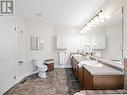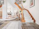 Nestled on a coveted crescent in Oakville's sought-after Lakeshore Woods, this immaculate 5-bedroom, 4-bathroom home offers over 4,660 sq ft of refined living space on a private pie-shaped lot. Stunning stone and brick curb appeal and a charming covered porch create a warm welcome. The sun-filled main level features a double-door entry to a sunken foyer, formal living and dining rooms, and a private office. Highlights include custom millwork, 9-foot smooth ceilings, hardwood floors, and a sweeping staircase with wrought-iron spindles. The cozy family room, with gas fireplace, flows seamlessly into the chef-inspired kitchen featuring stone countertops, premium stainless steel appliances, a wine fridge, and custom cabinetry. The spacious breakfast area overlooks a beautifully landscaped backyard complete with a stone patio and irrigation system - perfect for effortless indoor/outdoor entertaining Upstairs, the generous primary suite offers double doors, two walk-in closets, and a spa-like ensuite with soaker tub, glass shower, and double vanities. Four additional bedrooms, including a Jack-and-Jill ensuite and a third full bath, complete the level. The fully finished lower level expands the living space with a versatile recreation area, dedicated fitness or theatre room, pot lighting, cold cellar, and abundant storage. Steps to Lake Ontario and Shell Park, and close to Bronte Harbour, Bronte Village, GO Transit, highways, golf, and downtown Oakville - this exceptional location offers the perfect blend of luxury and everyday convenience. (id:27)