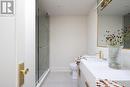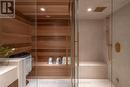 168 Bedford Park Avenue is a thoughtfully designed net zero ready family residence where architecture and function shape daily life, offering four bedrooms and five bathrooms in the main house, together with a turnkey one bedroom, one bathroom laneway suite. From the street, it presents a charming curb appeal, its proportions and detailing considered to sit comfortably within the Bedford Park streetscape. Inside, the home unfolds as a sequence of light filled spaces connected by soft arches, millwork, and deliberate transitions. Wide plank engineered white oak floors carry through the main level, establishing continuity of the design. The foyer is purposeful and uncluttered, with storage and lighting that allow the architecture to lead. The main level is arranged around how the house is lived in. A built-in cabinet anchors the dining space, while the kitchen forms the centre of daily activity, generous in scale and easy in use, with a large island, ample work surfaces, and integrated appliances supporting both everyday routines and gatherings. Living spaces remain connected yet distinct, culminating in a family room centred on a fireplace and opening directly to the backyard.The primary suite reads as a retreat, with integrated storage, access to a private terrace, and a well appointed ensuite designed for comfort and calm. The second bedroom features built-in cabinetry, a built-in desk nook, large tilt-and-turn windows, and a three-piece ensuite bathroom. The third level provides two additional bedrooms, supported by custom storage, a shared family bathroom, skylights, and an outdoor terrace that brings light and openness to the upper floor.The lower level functions as true living space, offering recreation and gym areas alongside a cedar sauna and steam shower. Set behind the main house, a fully self-contained laneway suite provides independent accommodation for extended family, guests, or rental use, featuring an additional bedroom and three-piece bathroom. (id:27)